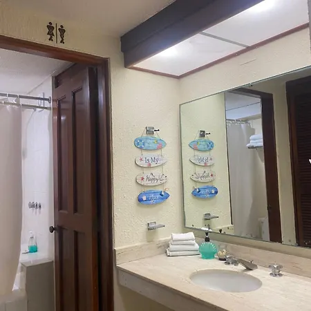 The beachfront Beautiful Condo A Few Steps To Sea Cancun is nestled in the Puerto Juarez district of Cancun, approximately a 15-minute walk from the El Meco Archaeological Site. There is a swimming pool along with a bar.